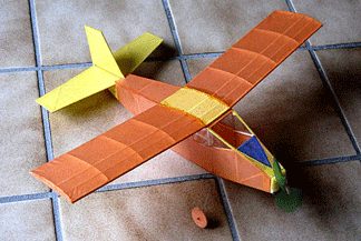 Bostonians are simple sport cabin planes Limited by AMA Rules to 50 square inch wings, and requiring a cabin of a designated size. They are usually flown indoors, and must take off from the floor. I designed this one using Turbo CAD. It flew fairly well when first built. I have flown it in Bong Eagles' meets at Racine's Memorial Hall. The airframe weighs 12.5 grams with nose weight added, and total weight is 14.5 grams with 2 grams of rubber. This is heavier than the 9 gram minimum weight set by AMA rules. It was built in 2011.